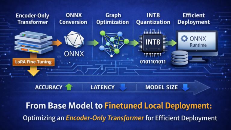 However, my objective was different: I was not building a generative assistant but a high-accuracy classification system. Classification tasks—such as intent detection, sentiment analysis, or structured label assignment—benefit from encoder-only architectures. Unlike decoder-only models, encoder-based Transformers process the entire input bidirectionally, producing stable and context-rich representations that align naturally with discriminative objectives while maintaining predictable inference behavior. For this reason, I deliberately shifted toward an encoder-only Transformer architecture tailored to classification workloads.